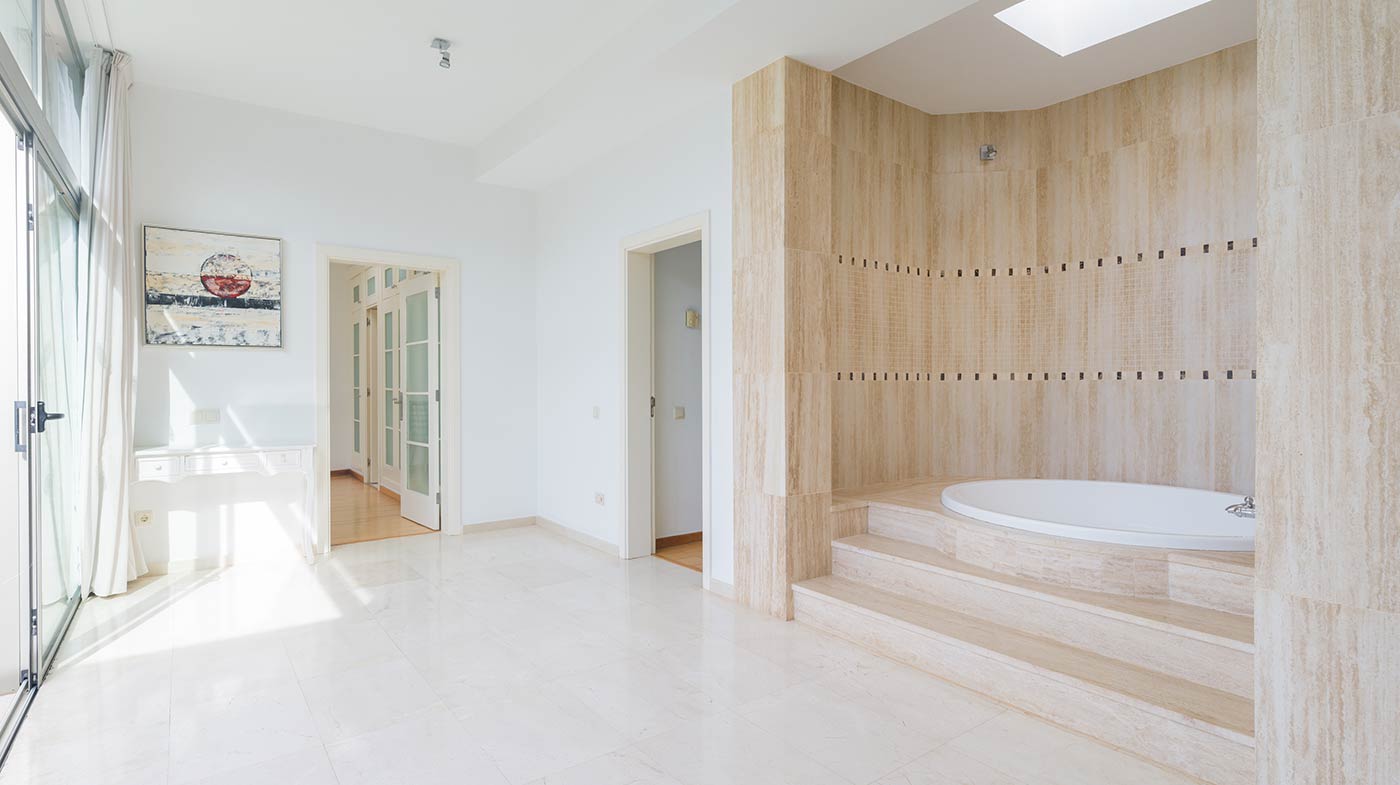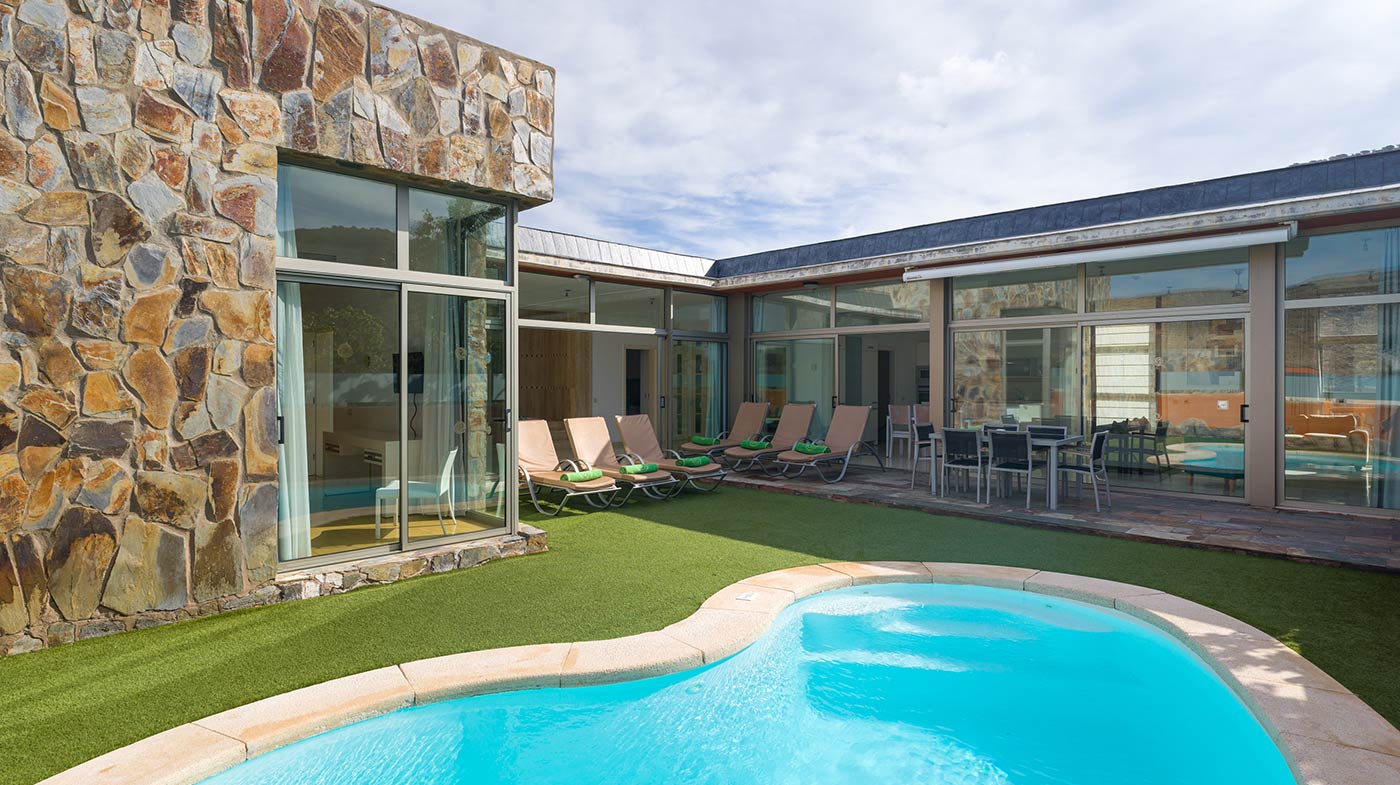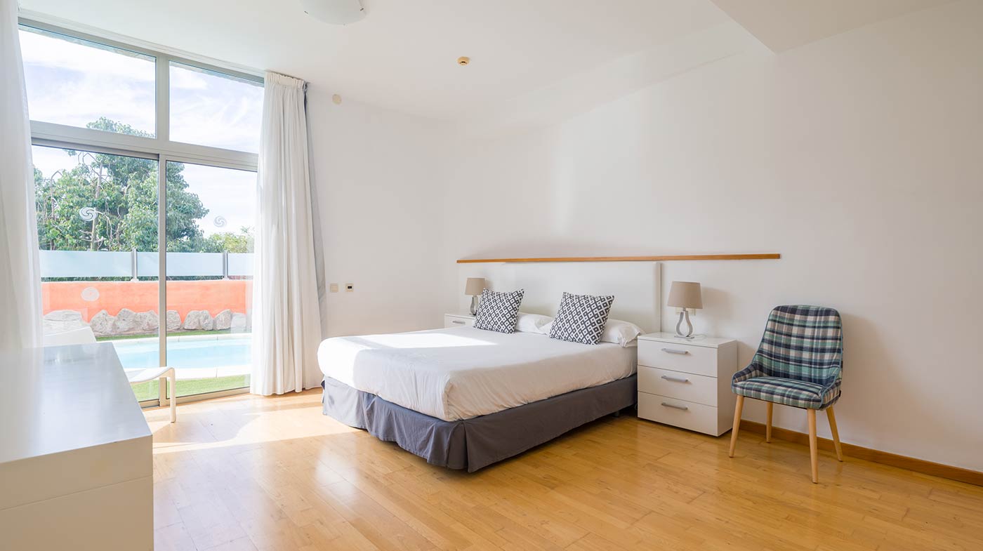 - Planta Principal: Esta planta alberga un espacioso salón-comedor con cocina integrada, rodeado de grandes ventanales que inundan de luz natural el espacio y ofrecen vistas al jardín y la piscina. También incluye un aseo de cortesía y un área de jacuzzi para tu disfrute. Los tres dormitorios en suite son amplios, con baños iluminados naturalmente gracias a sus claraboyas. Uno de los dormitorios cuenta con acceso directo a la piscina, añadiendo un toque de lujo adicional.
