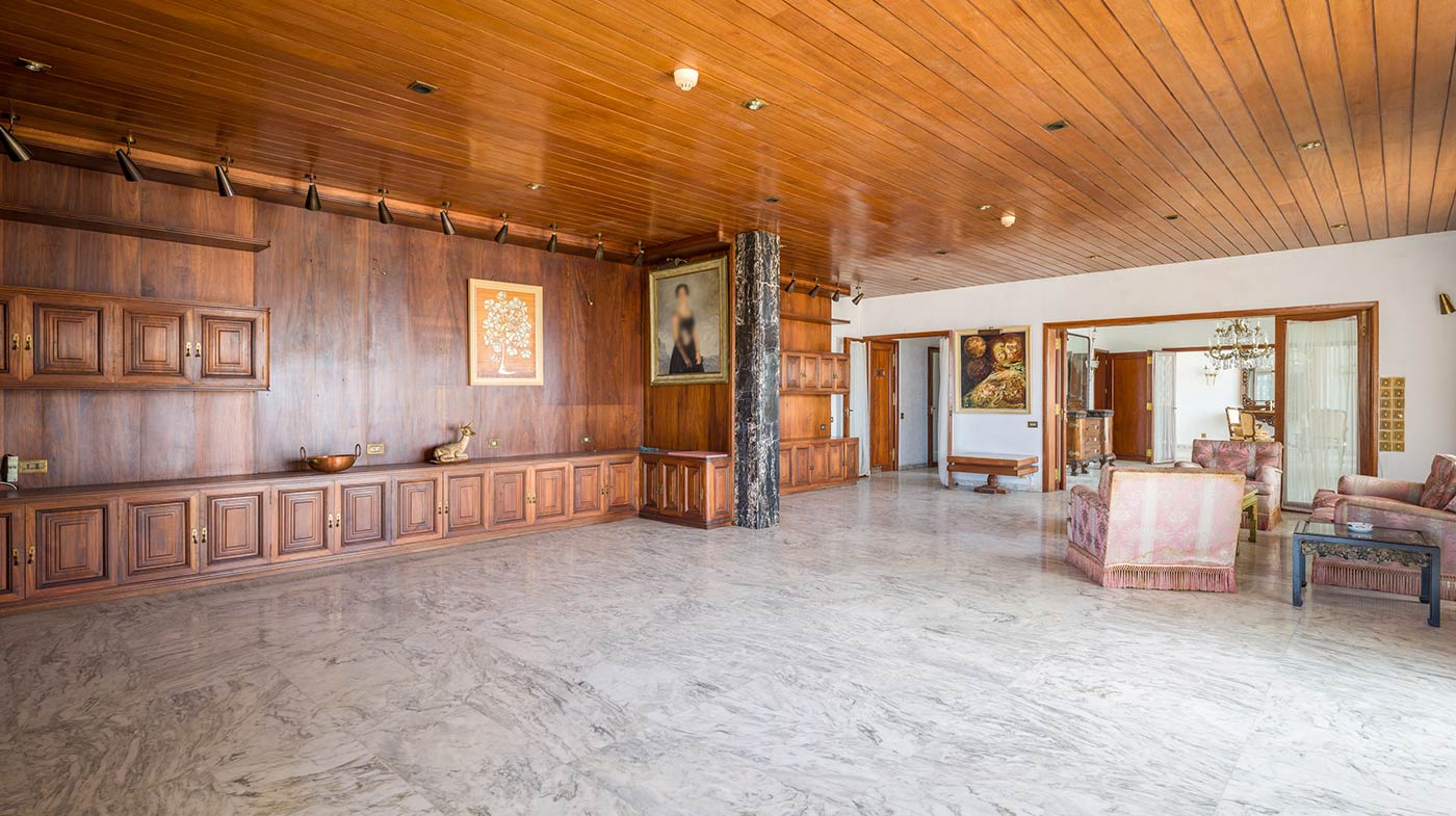 - Primera Planta: En este nivel, un espacioso distribuidor conecta tres salones contiguos que suman 120 m², todos con grandes ventanales y acceso a una terraza de 100 m² con vistas impresionantes al mar y la ciudad. También incluye una cocina con comedor, baño, despensa, y zona de lavandería y servicio.