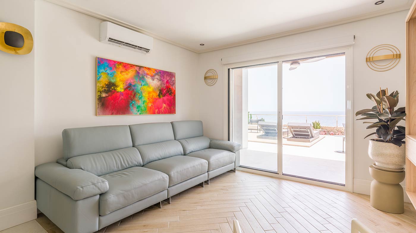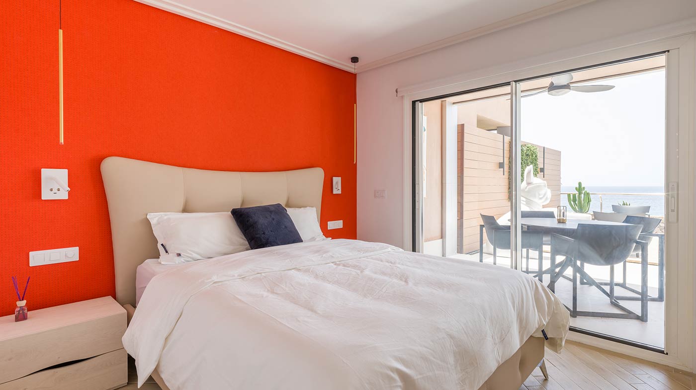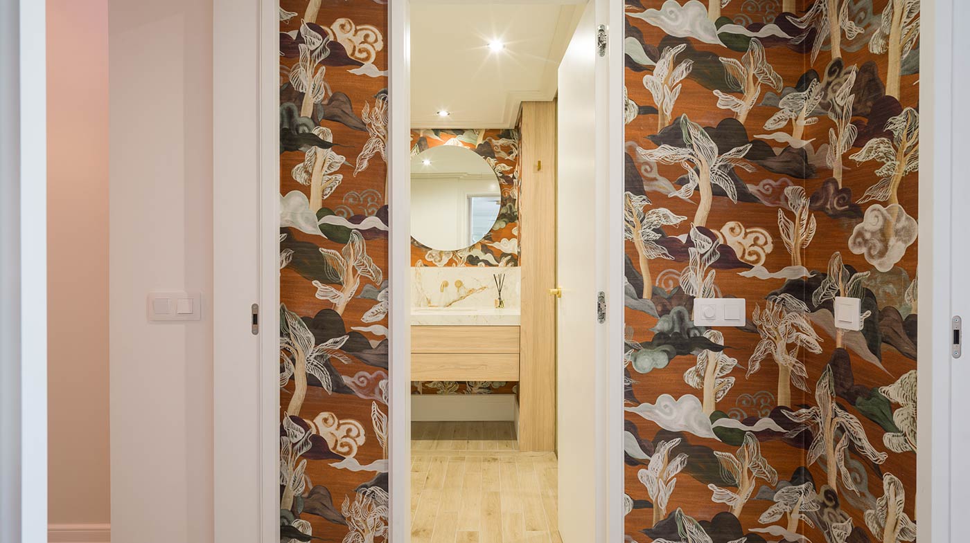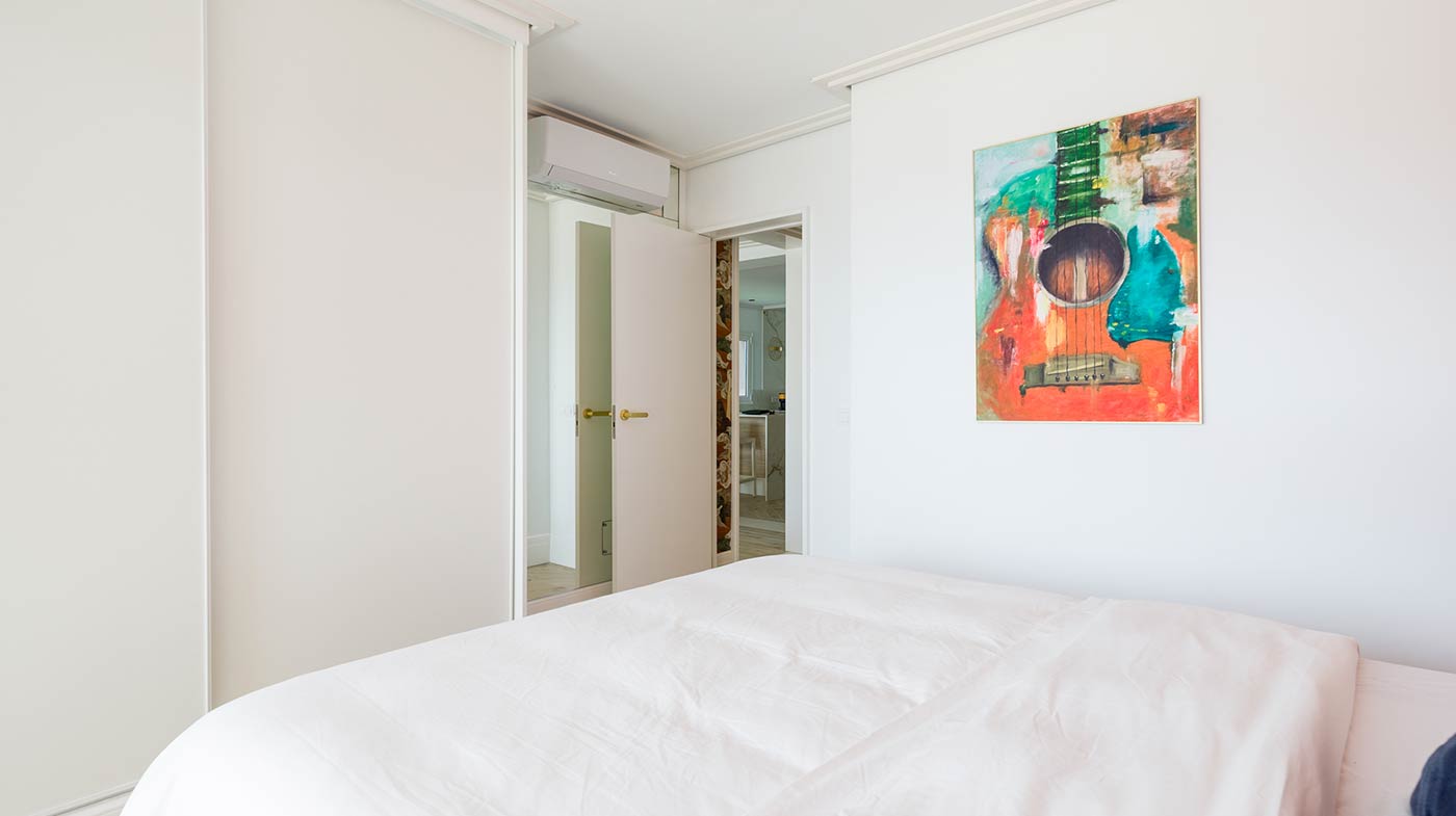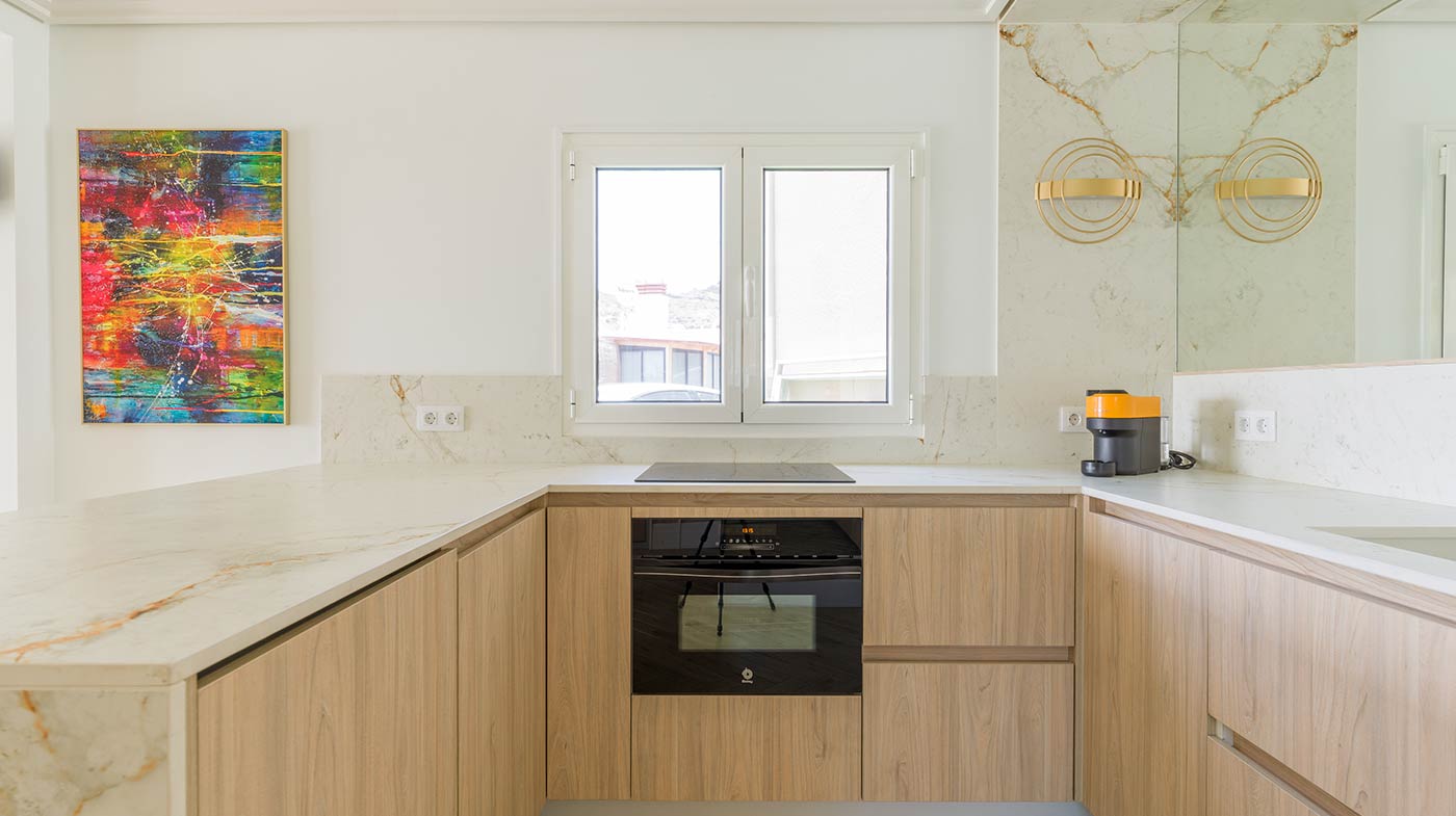 - Interior: Sillas de comedor Panton, butaca y sofá Kartell, grifería dorada Rovira, papel pintado Arte, Colección Le Corbusier, molduras Orac Decor, inodoro japonés automático, regulación de tiras LED, encimera y alicatados Neolith, ventanas correderas Cortizo con perfil slim, y aire acondicionado.