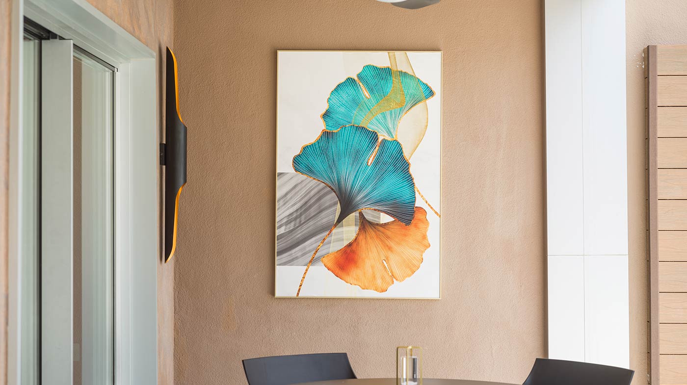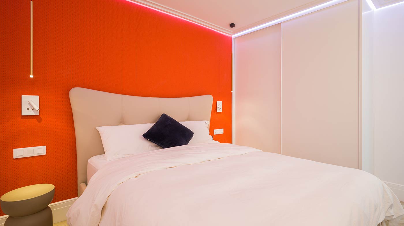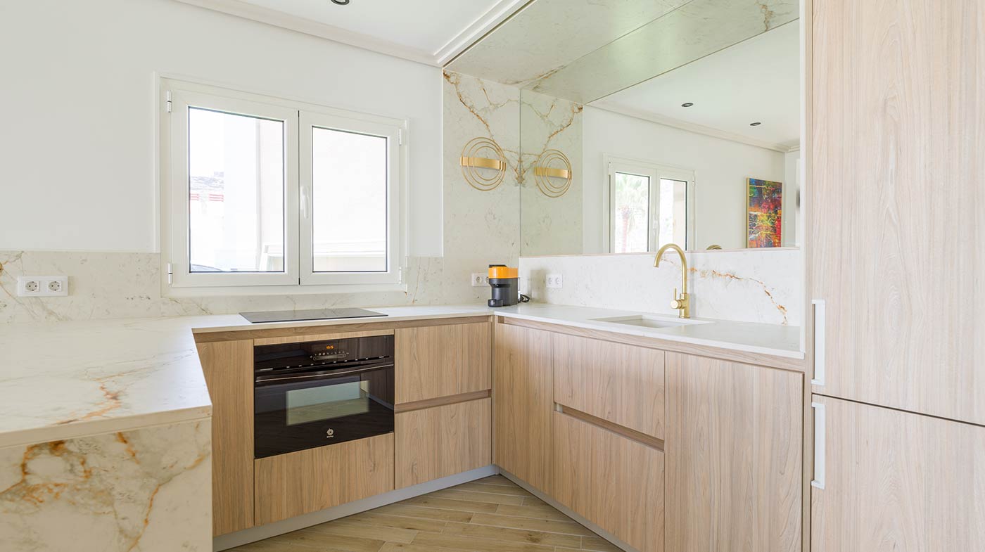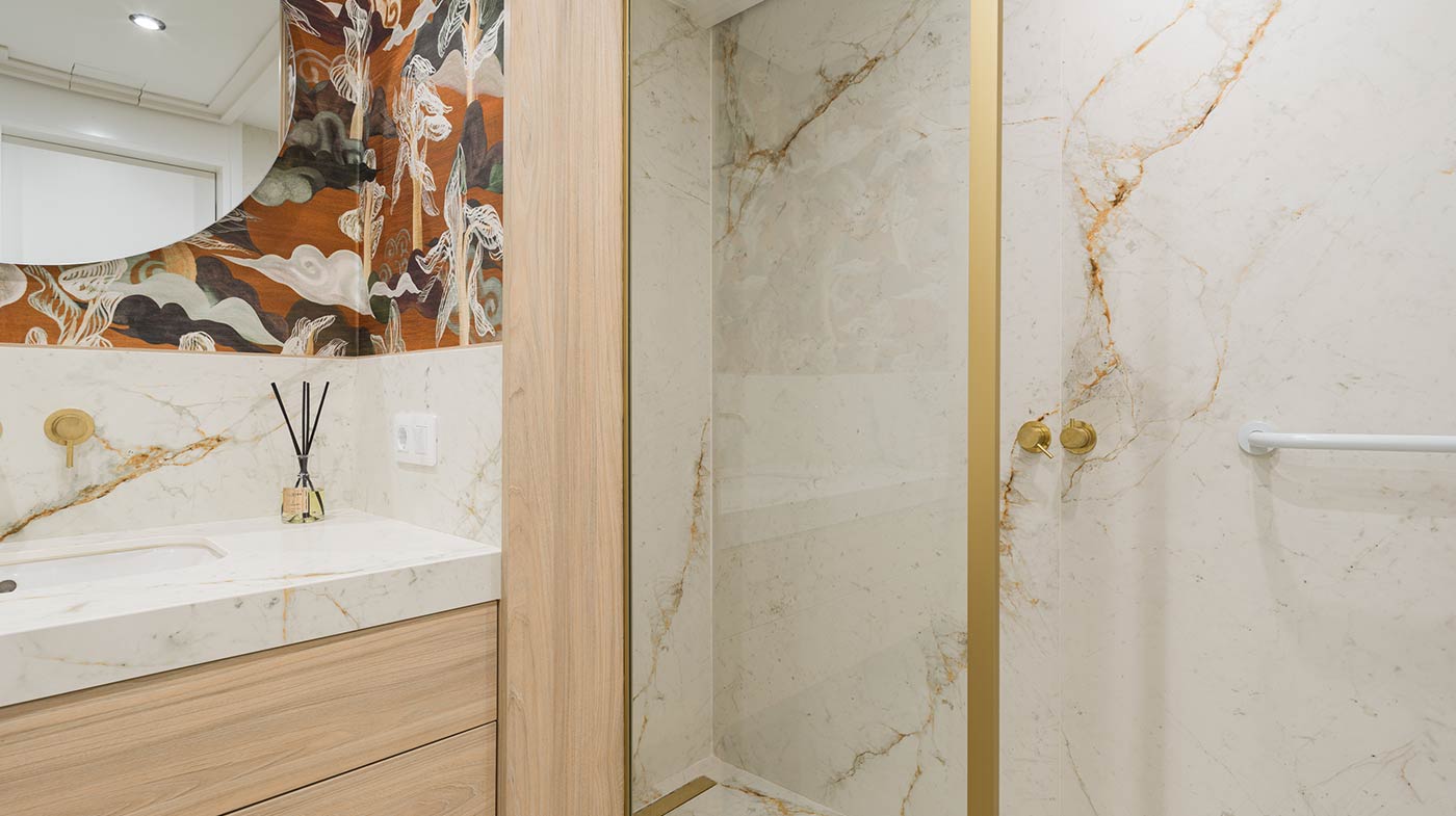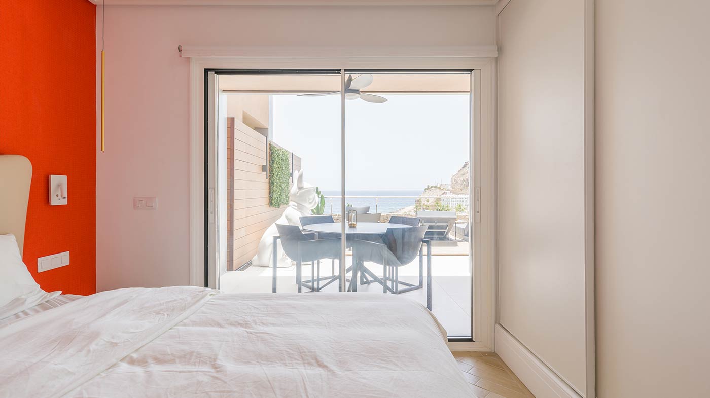 - Interior: Sillas de comedor Panton, butaca y sofá Kartell, grifería dorada Rovira, papel pintado Arte, Colección Le Corbusier, molduras Orac Decor, inodoro japonés automático, regulación de tiras LED, encimera y alicatados Neolith, ventanas correderas Cortizo con perfil slim, y aire acondicionado.